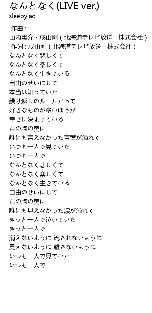 | [00:14.12] | なんとなく生きている |