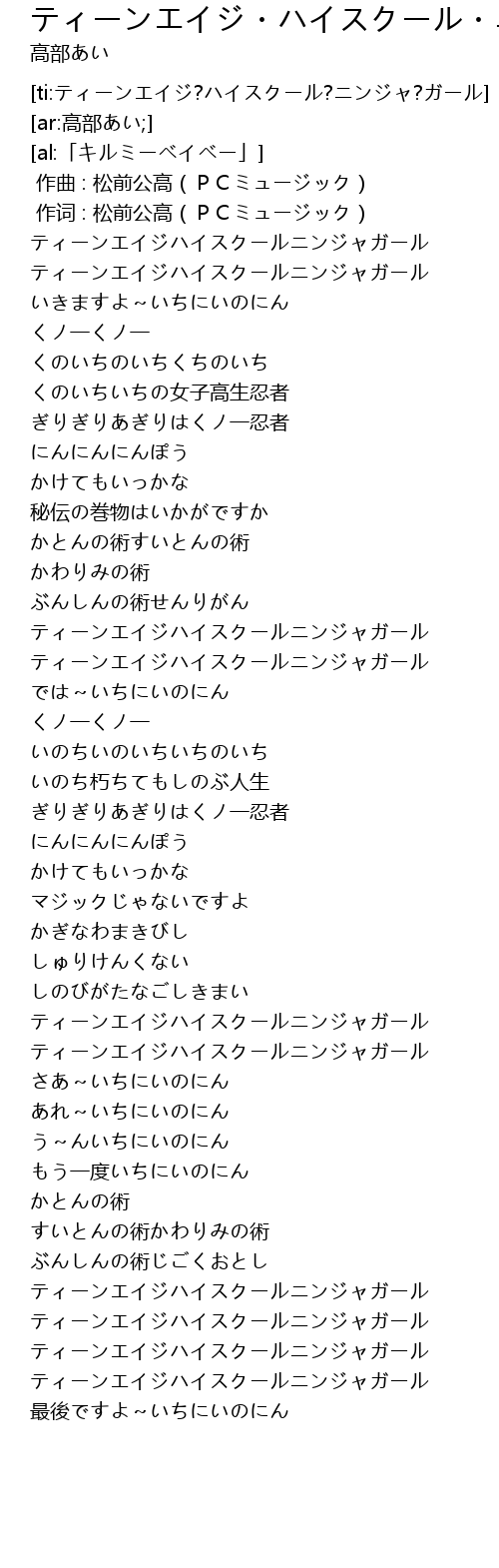 | [ti:ティーンエイジ?ハイスクール?ニンジャ?ガール] | |