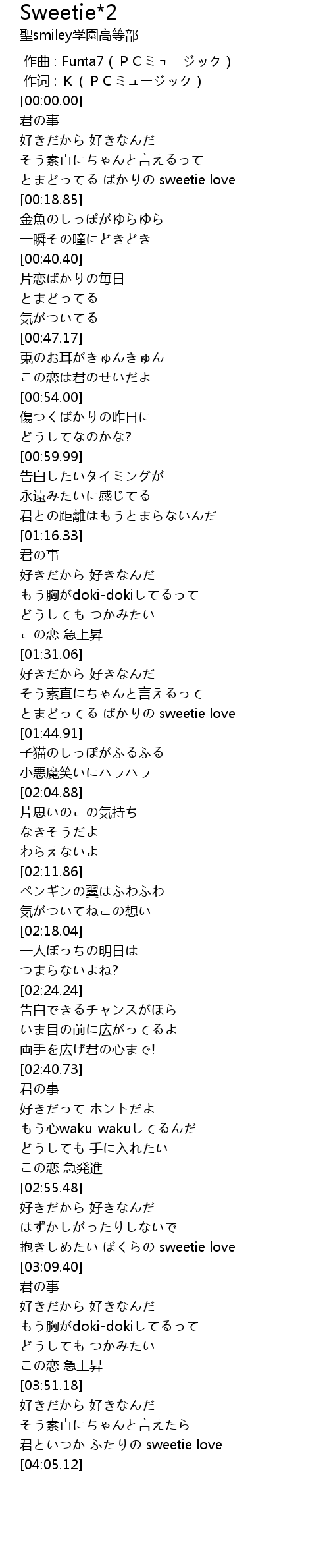 | [03:57.95] | 君といつか ふたりの sweetie love |