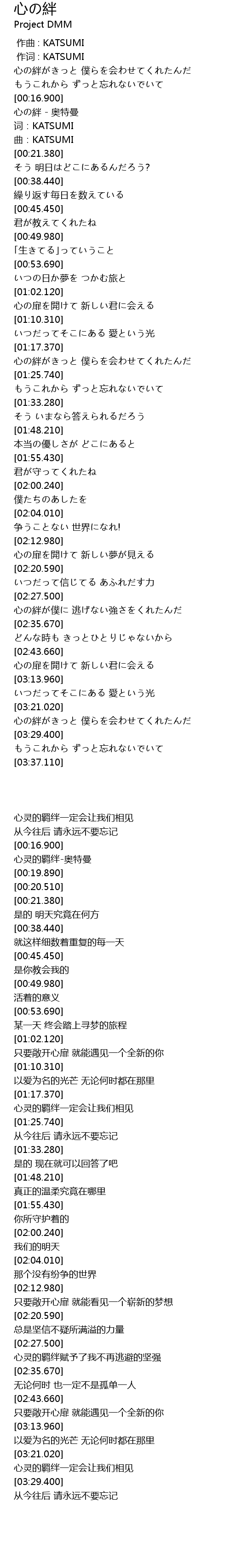 | [00:18.100] | 心の絆 - 奥特曼 |