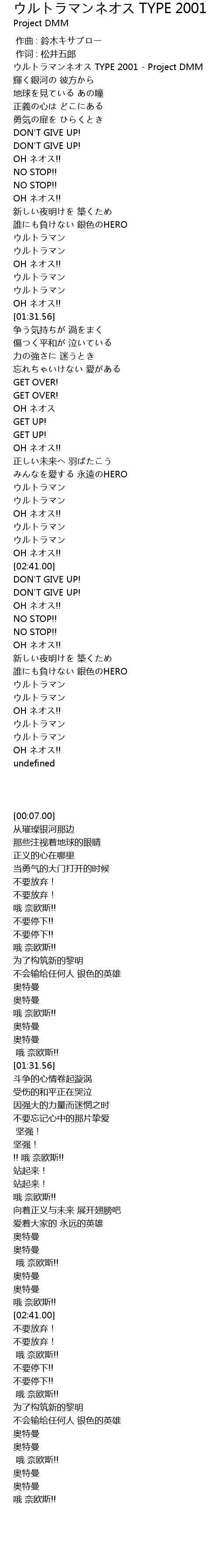 | [00:07.00] | ウルトラマンネオス TYPE 2001 - Project DMM |