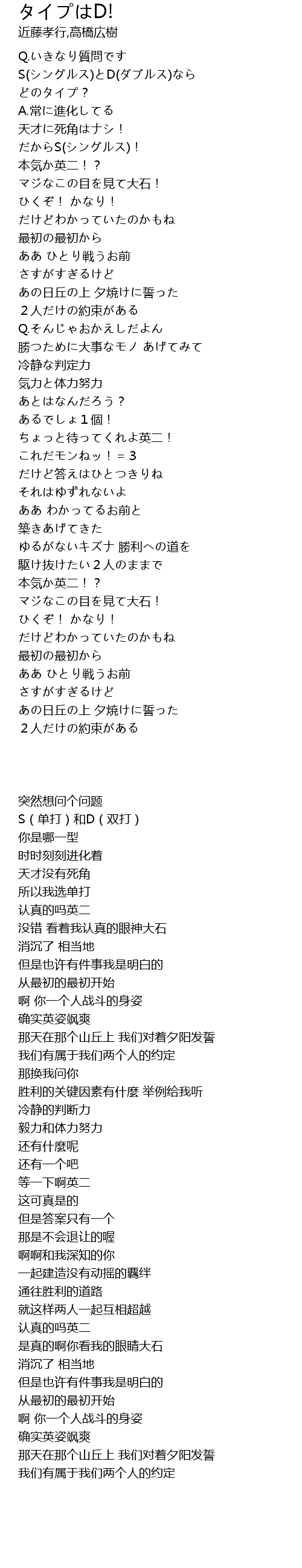 S(单打)和D(双打) |