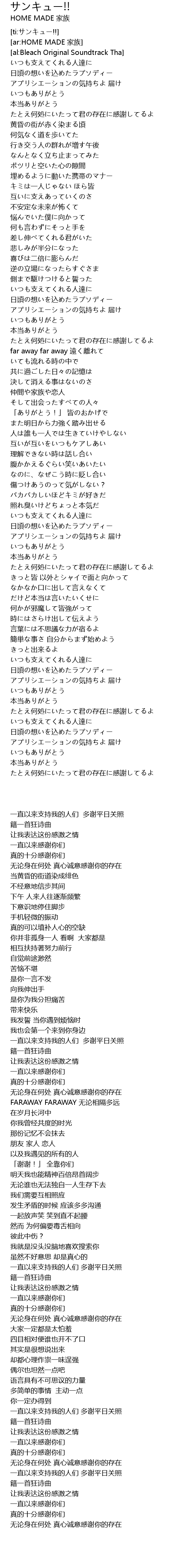 | [03:13.93] | 无论身在何处 真心诚意感谢你的存在 |