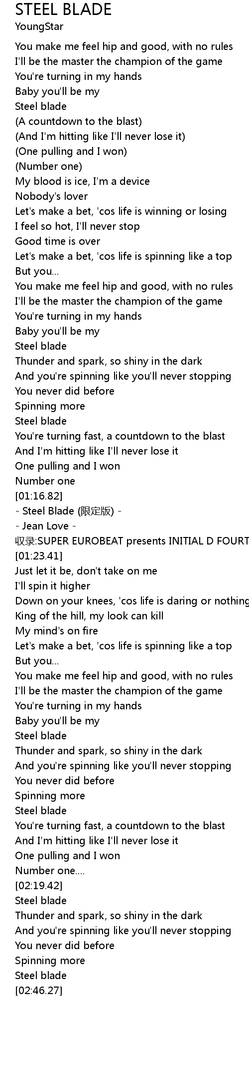 | [01:53.47] | Steel blade |