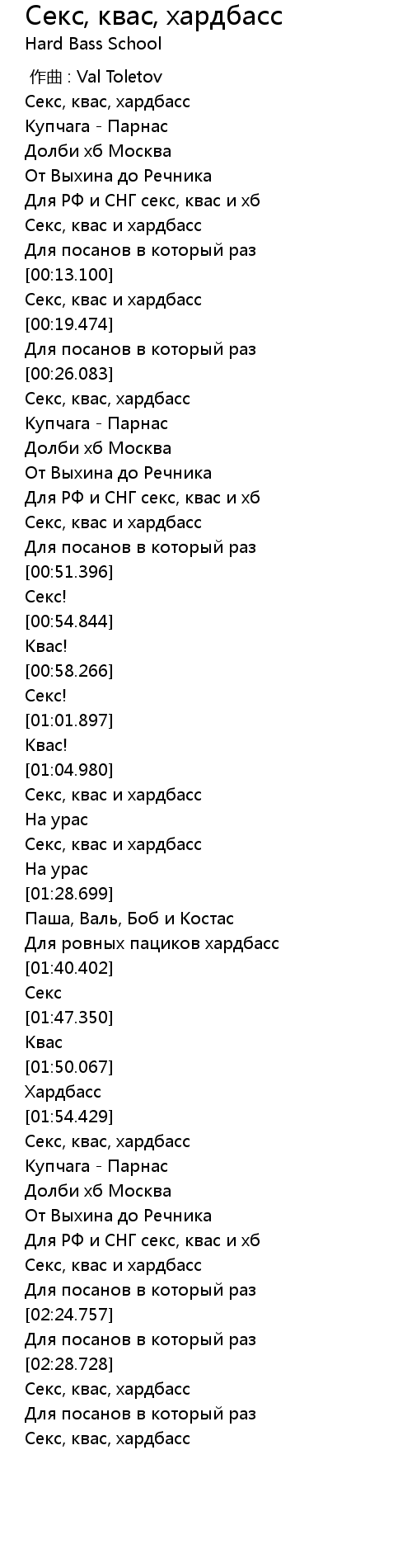 | [02:11.304] | Секс, квас, хардбасс |