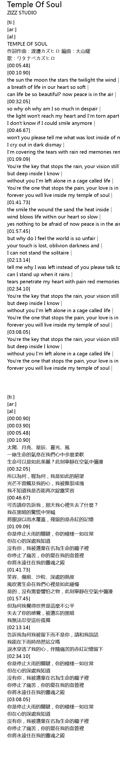 | [02:58.63] | forever you will live inside my temple of soul| |