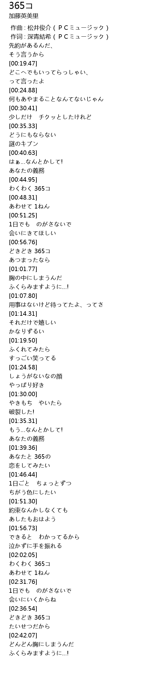 | [02:37.70] | どきどき 365コ |