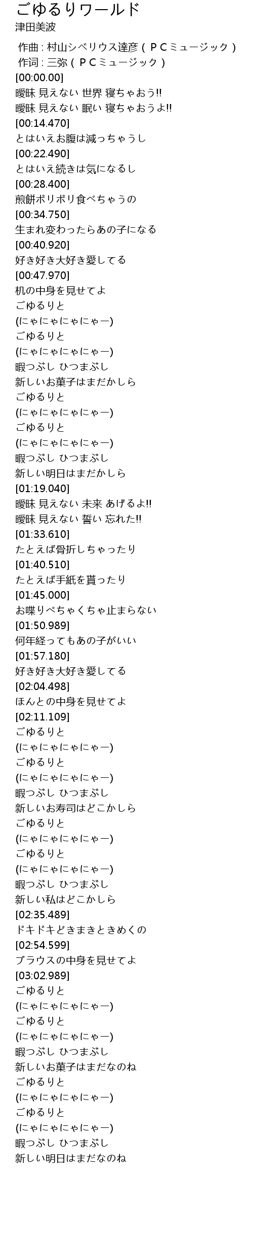 | [02:25.039] | (にゃにゃにゃにゃー) |