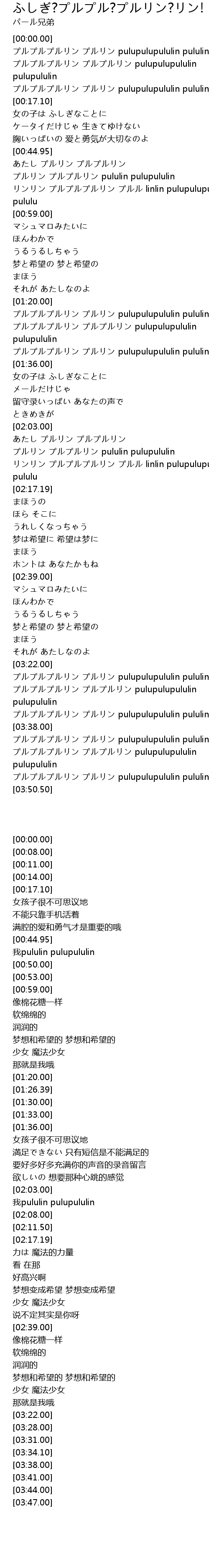 | [03:47.00] | プルプルプルリン プルリン pulupulupululin pululin |