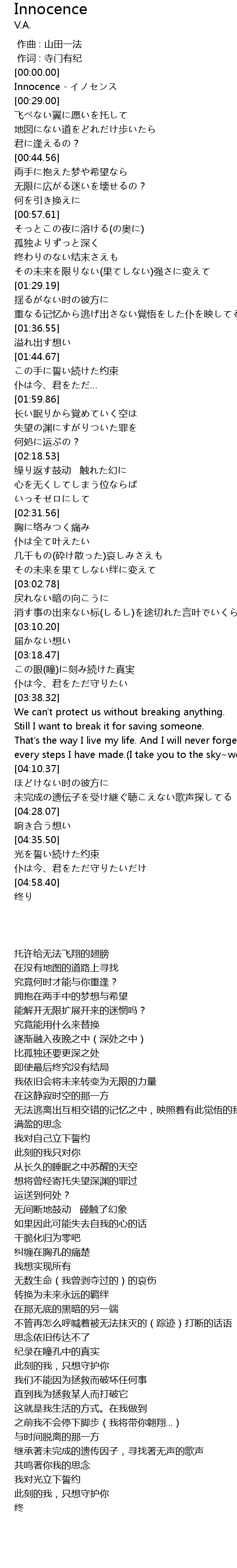 | [03:18.86] | この眼(瞳)に刻み続けた真実 |