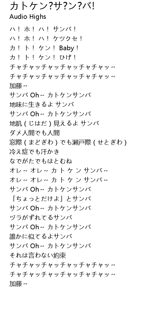 オレ~ オレ~ カ ト ケ ン サンバ~ |