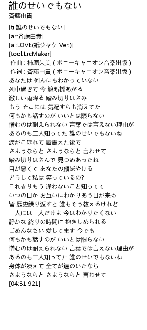 | [00:01.000] | 作词 : 斉藤由貴(ポニーキャニオン音楽出版) |