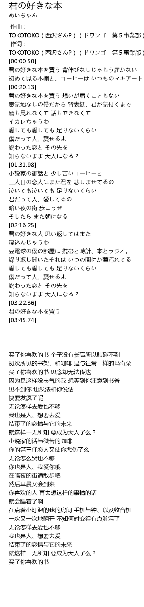 | [03:38.66] | 君の好きな本を買う |