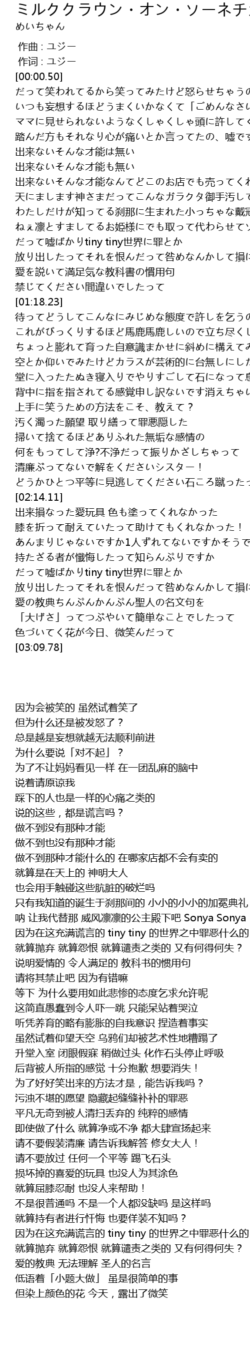 | [01:04.52] | 因为在这充满谎言的 tiny tiny 的世界之中罪恶什么的 |