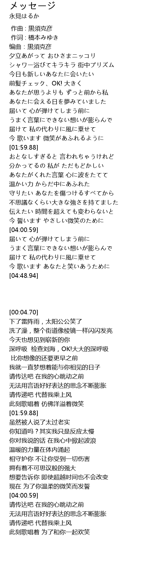 | 歌曲 | メッセージ |