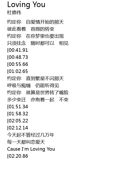 | [02:50.99][00:41.91] | Cause I' m Loving You |