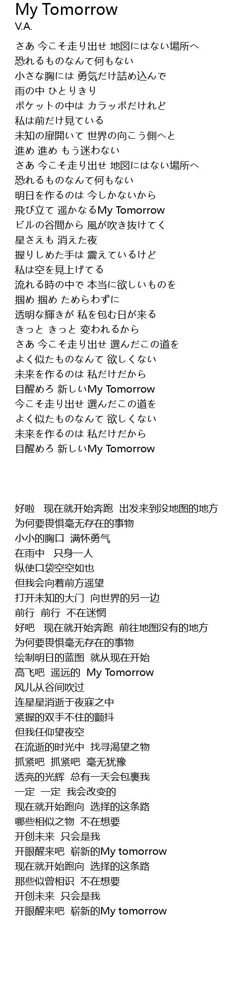 | [04:03.30] | 开眼醒来吧 崭新的My tomorrow |