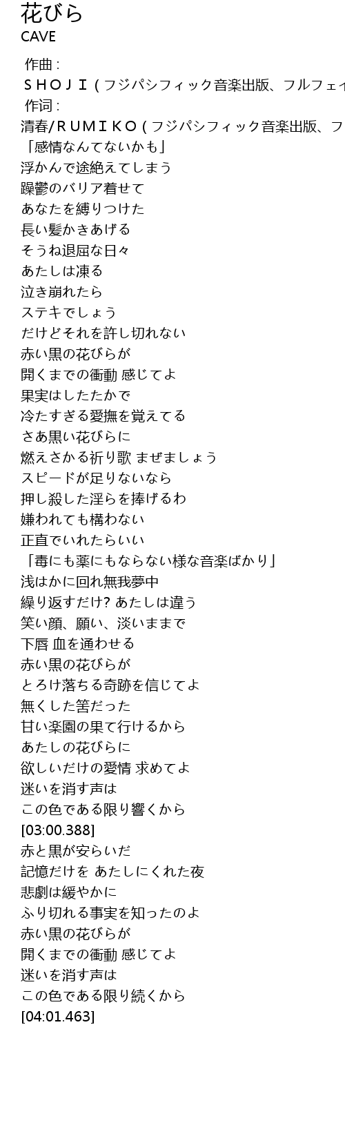 | [00:01.000] | 作词 : 清春/RUMIKO(フジパシフィック音楽出版、フルフェイス、PCライツ) |
