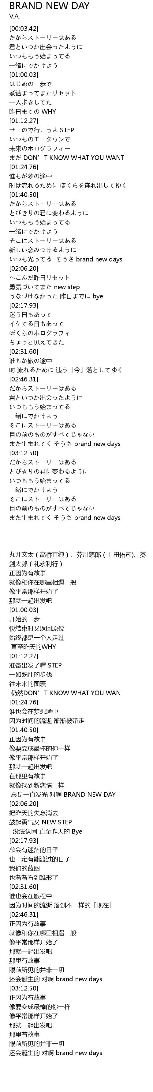 | [03:05.56] | 还会诞生的 对啊 brand new days |