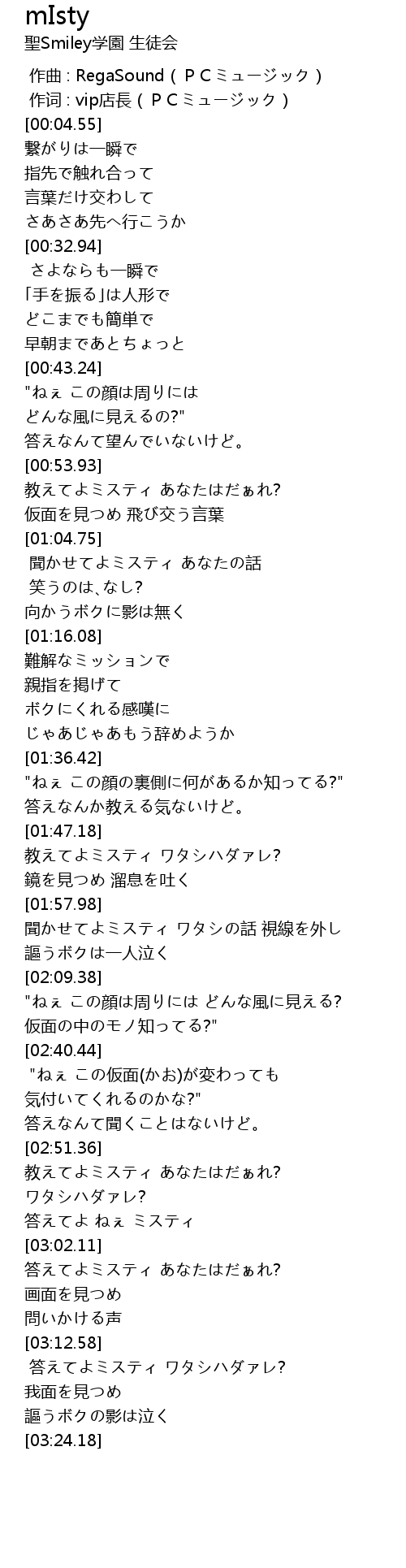 | [03:12.73] | 答えてよミスティ ワタシハダァレ? |