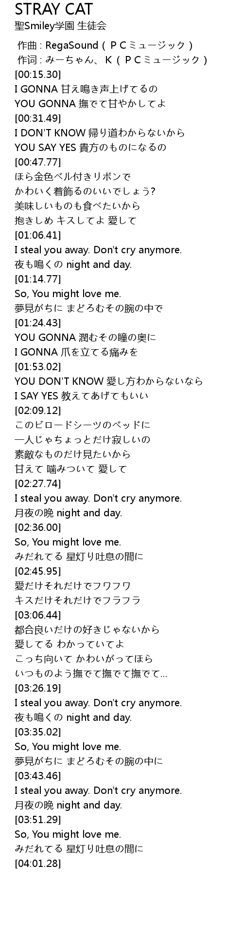 | [00:26.27] | YOU GONNA 撫でて甘やかしてよ |