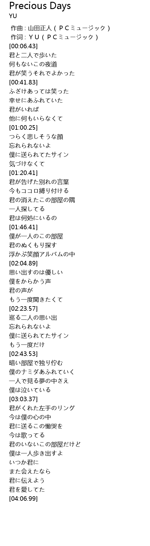 | [00:01.000] | 作词 : YU(PCミュージック) |