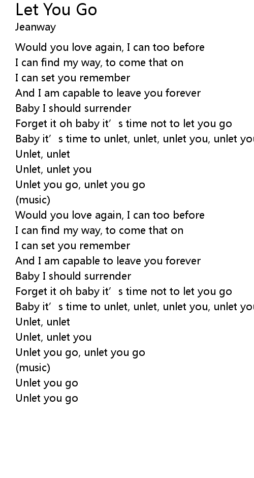 | [00:44.310] | Baby it' s time to unlet, unlet, unlet you, unlet you |