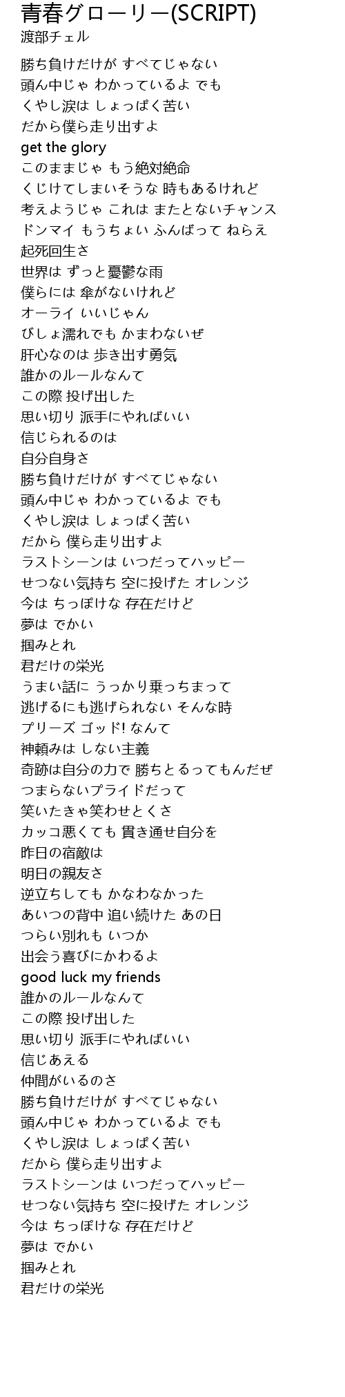 | 歌曲 | 青春グローリー(SCRIPT) |