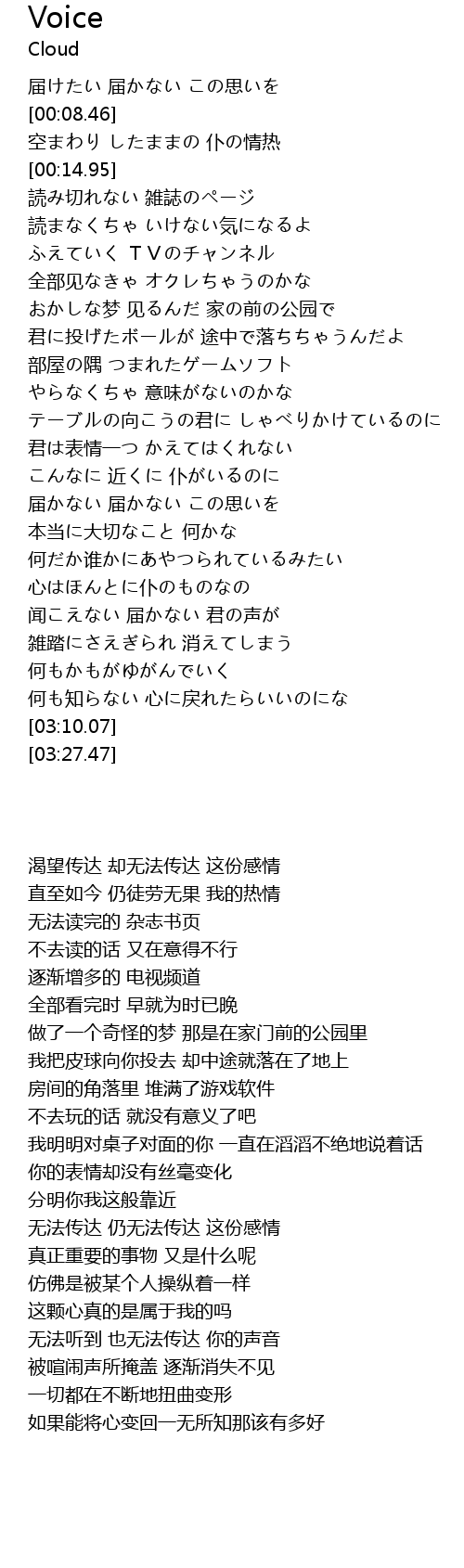| [02:39.48] | 闻こえない 届かない 君の声が |