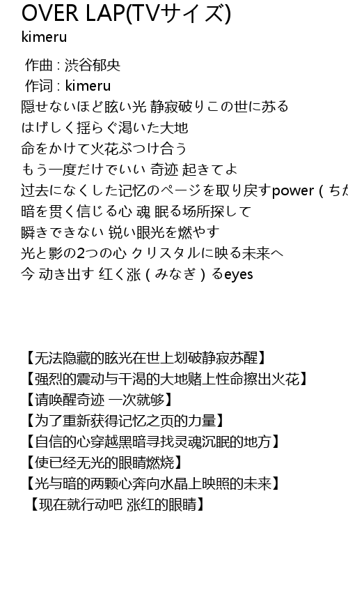 | [00:07.92] | 【无法隐藏的眩光在世上划破静寂苏醒】 |