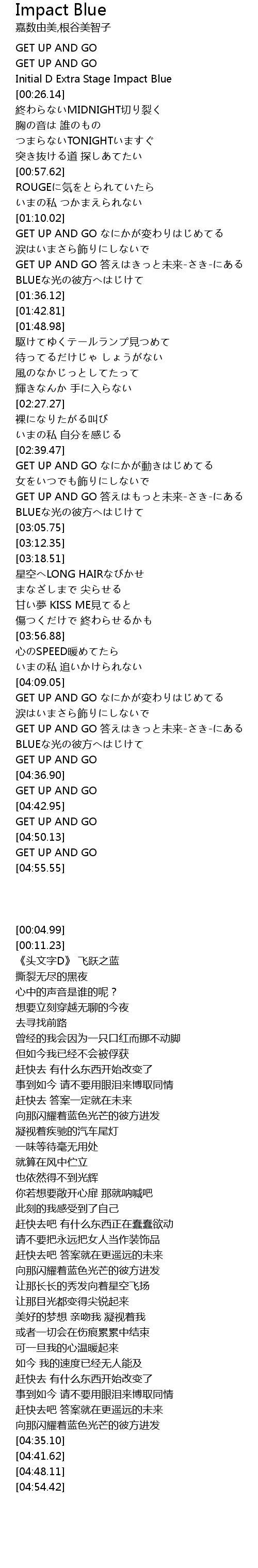 | [00:19.38] | Initial D Extra Stage Impact Blue |