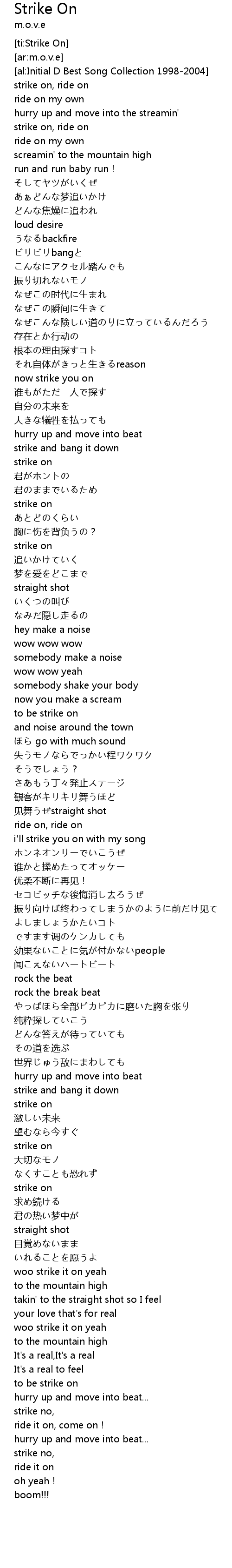 | [00:19.14] | strike on, ride on |