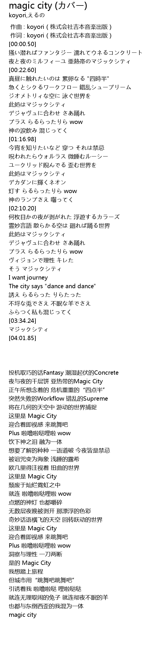 | [00:15.32] | 夜と夜のミルフィーユ 亜熱帯のマジックシティ |