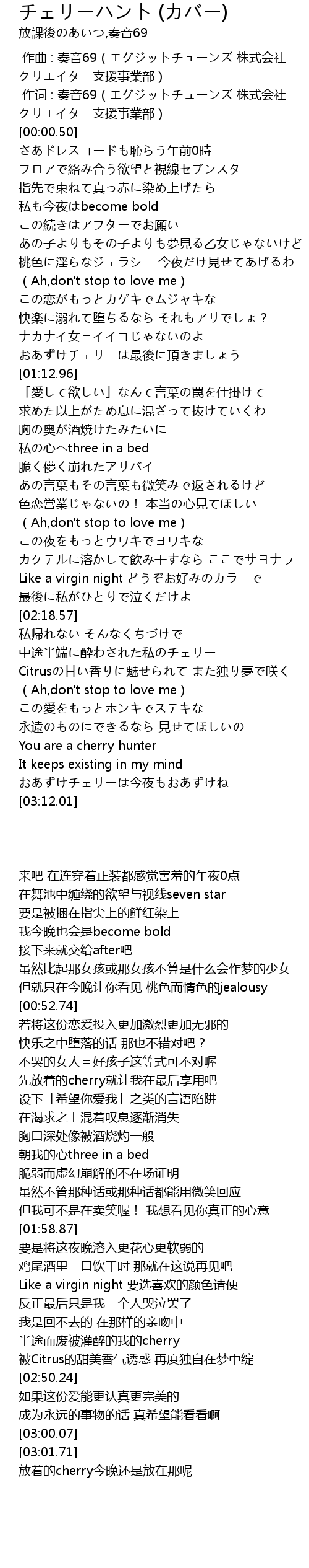 | [03:03.77] | おあずけチェリーは今夜もおあずけね |