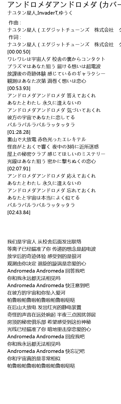 | [01:00.90] | Andromeda Andromeda 回答我吧 |