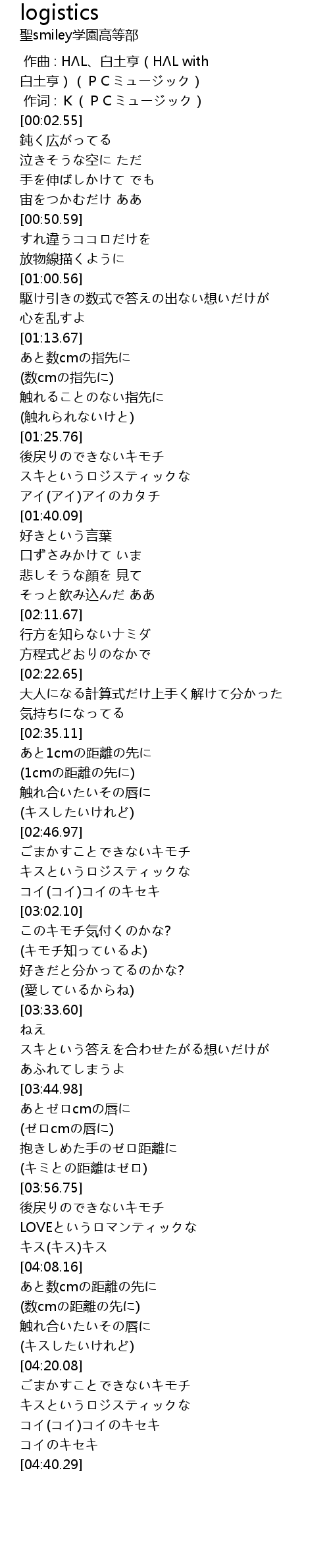 | [02:50.26] | キスというロジスティックな |