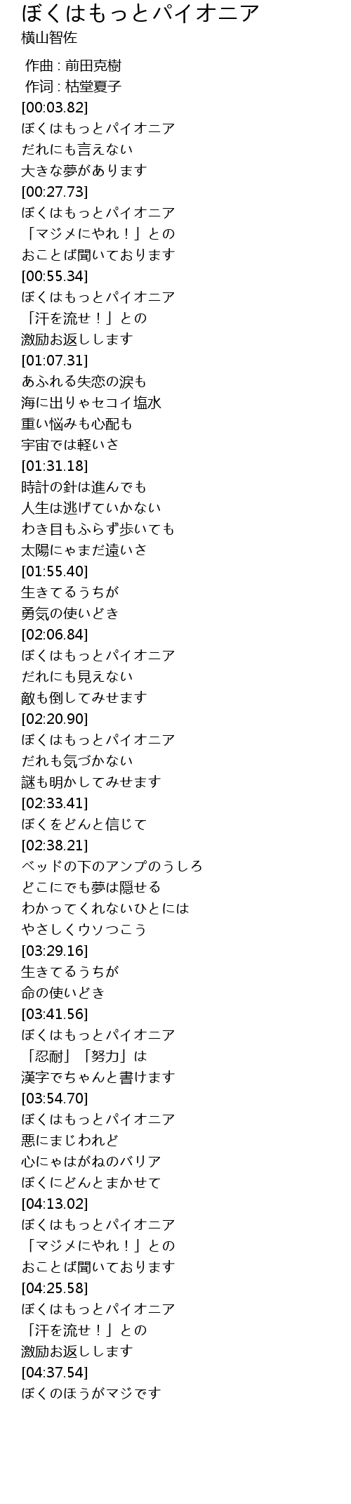| [03:56.02] | ぼくはもっとパイオニア |