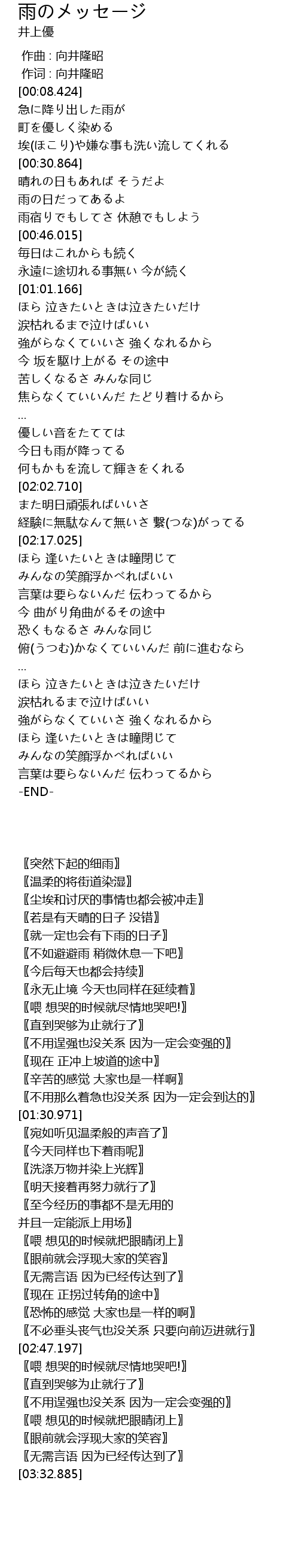 | [03:26.328] | 〖无需言语 因为已经传达到了〗 |