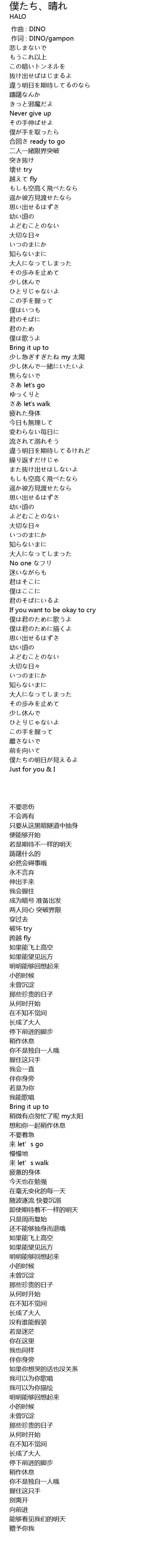 | [00:01.000] | 作词 : DINO/gampon |