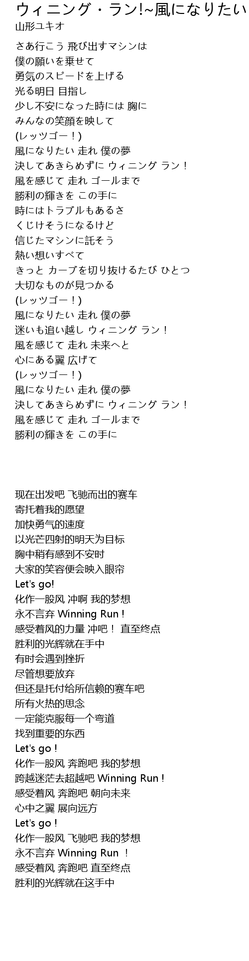 | [02:22.22] | 跨越迷茫去超越吧 Winning Run ! |