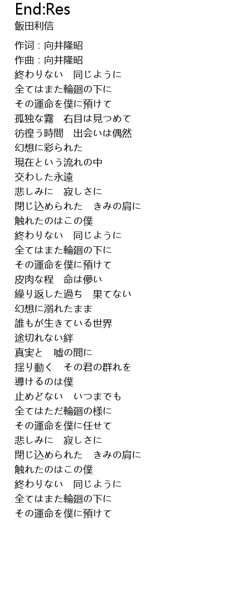 | [00:48.810] | 孤独な霧 右目は見つめて |