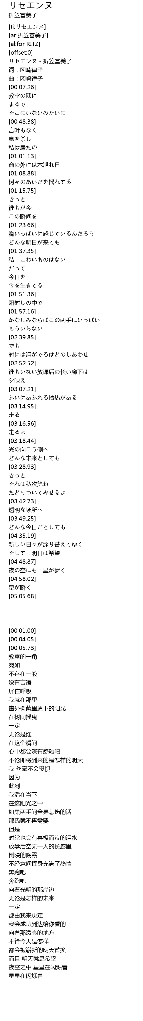 | [00:01.00] | リセエンヌ - 折笠富美子 |