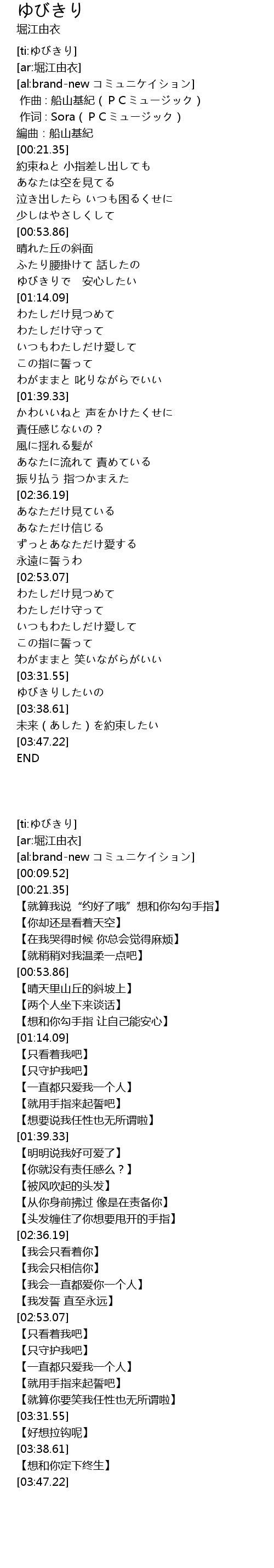 | [03:21.25] | 【就用手指来起誓吧】 |