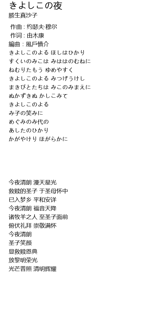 | 歌曲 | きよしこの夜 |