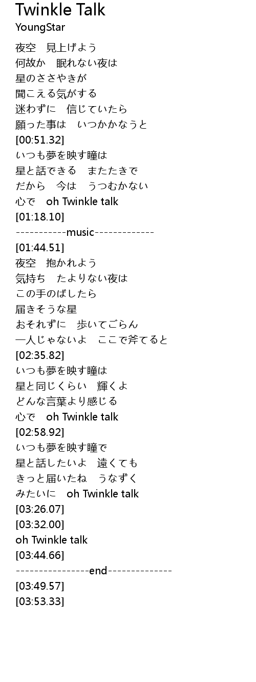 | [02:53.72] | 心で oh Twinkle talk |