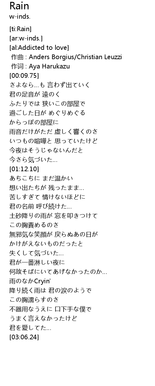 | [02:36.35] | 降り続く雨は 君の涙のようで |