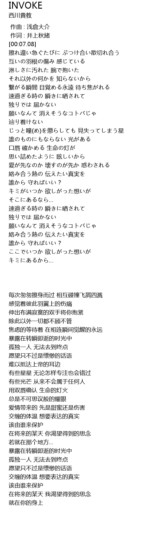 | 歌曲 | INVOKE |