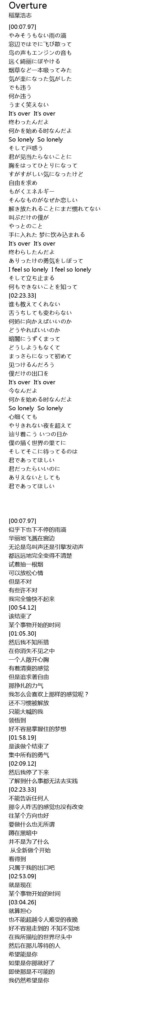 | [02:09.12] | I feel so lonely I feel so lonely |