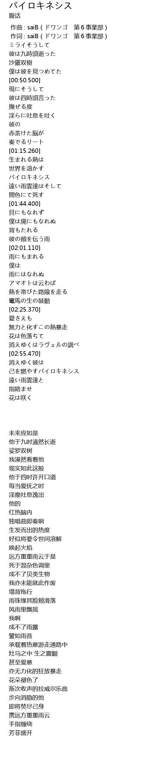 | [00:01.000] | 作词 : saiB(ドワンゴ 第6事業部) |