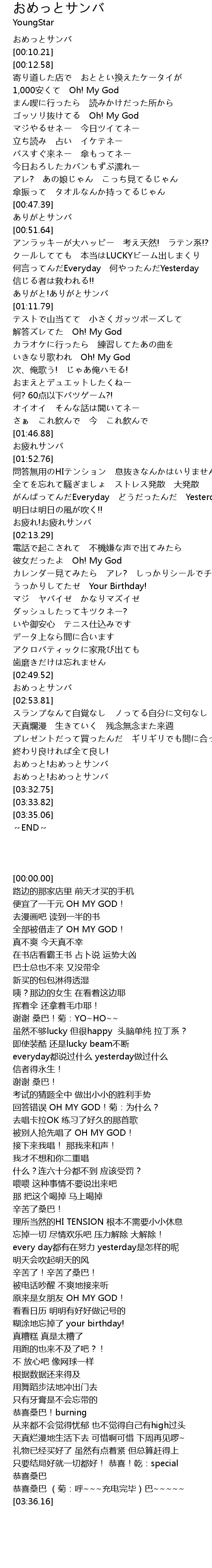| [03:10.12] | おめっと!おめっとサンバ |